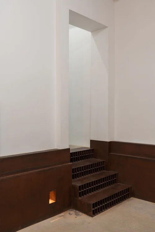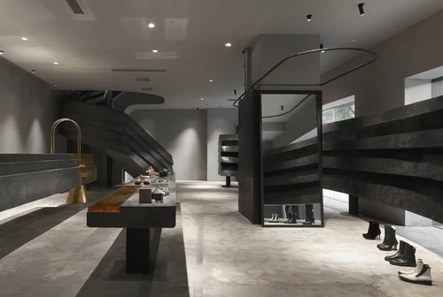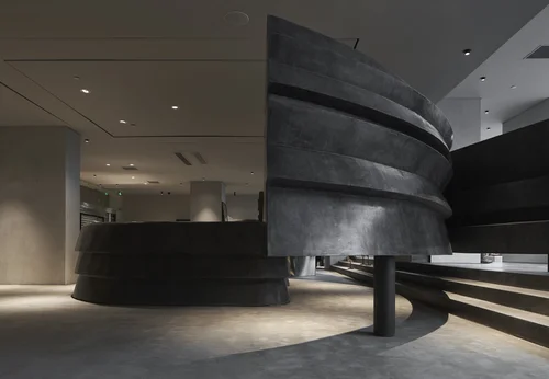 我们希望使用大理石来处理这些动态的线条,石材在曲面部分翻转之后产生一种“小落差的序列视觉”,整体空间动态静止。