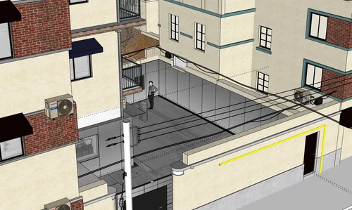 In this originally square space of 60 m2, we intend to apply dynamic and rolling curves that divide the space into several functional sections.